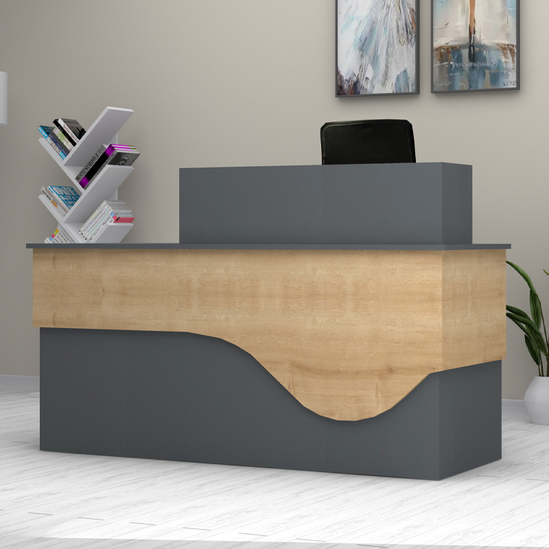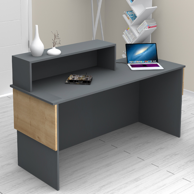 Γραφείο Υποδοχής - Reception Dustin Megapap Χρώμα Ανθρακί - Φυσικό Οξιάς 160x60x101,8εκ.
