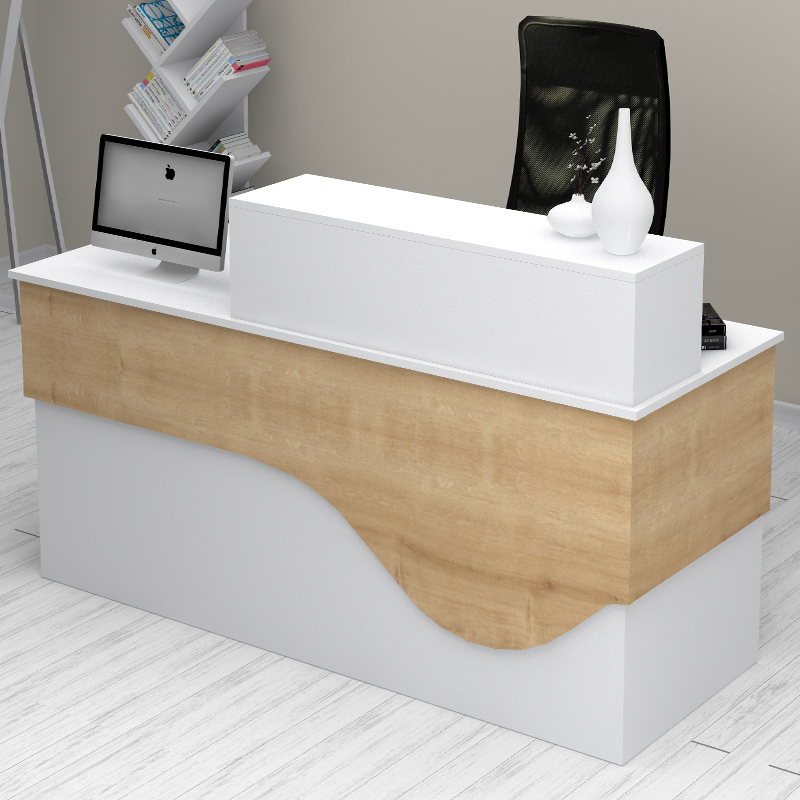 Γραφείο Υποδοχής - Reception Dustin Megapap Χρώμα Λευκό - Φυσικό Οξιάς 160x60x101,8εκ.