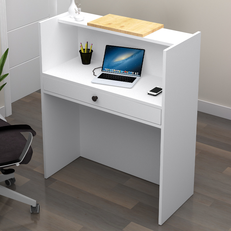 Γραφείο Υποδοχής - Reception Mezzo Megapap Χρώμα Λευκό - Φυσικό Οξιάς 90x40x110εκ.