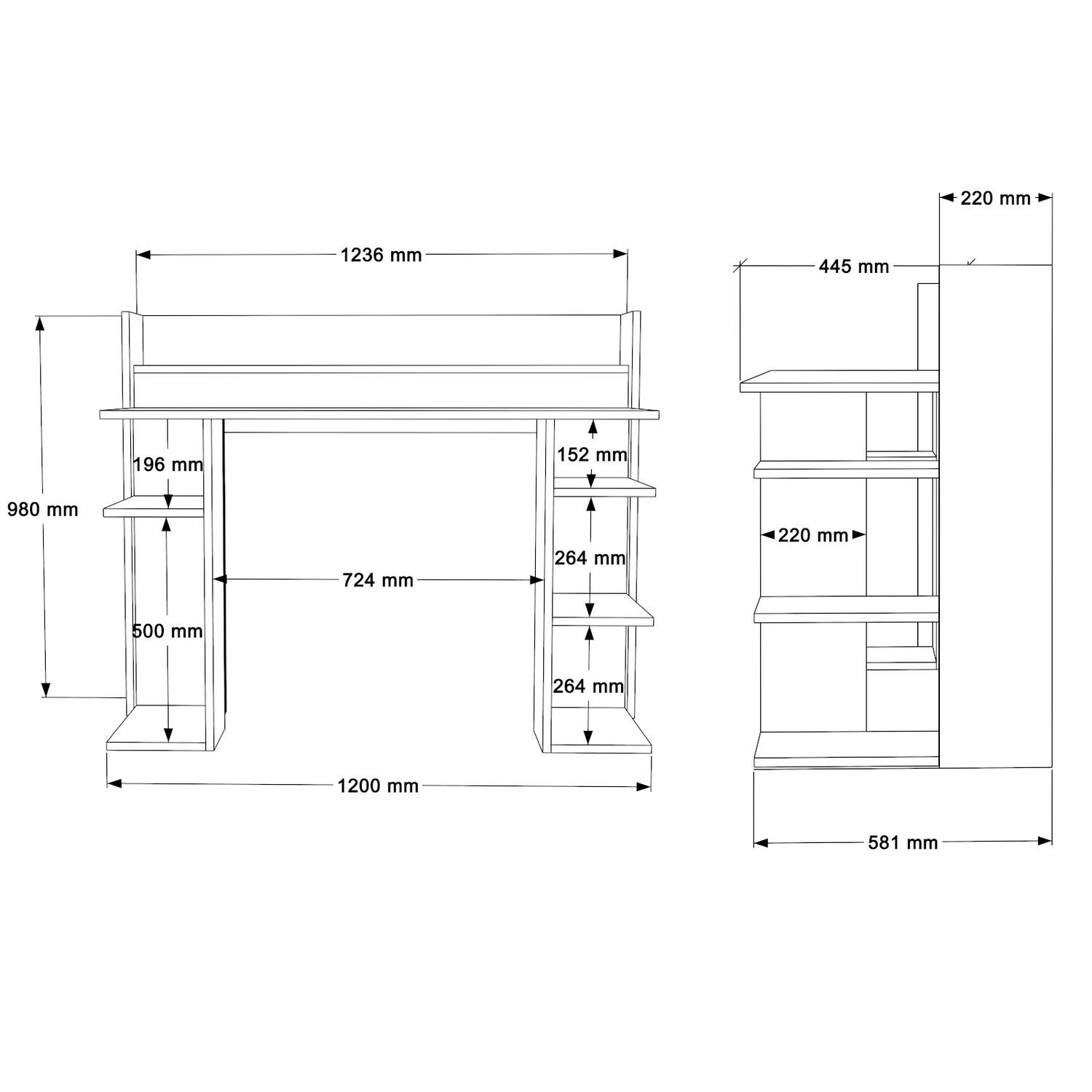 - Φέρει τρία ράφια στα δεξιά ικανοποιητικού μεγέθους για την αποθήκευση βιβλίων και αντικειμένων