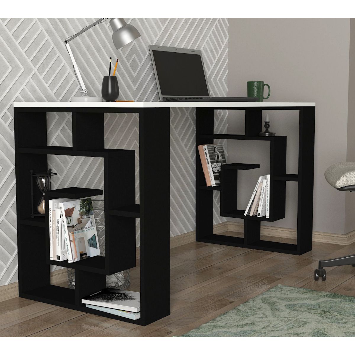Γραφείο ArteLibre LINE Λευκό/Μαύρο 140x60x74cm