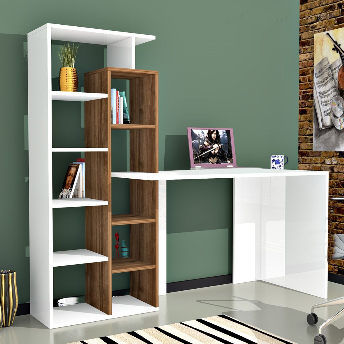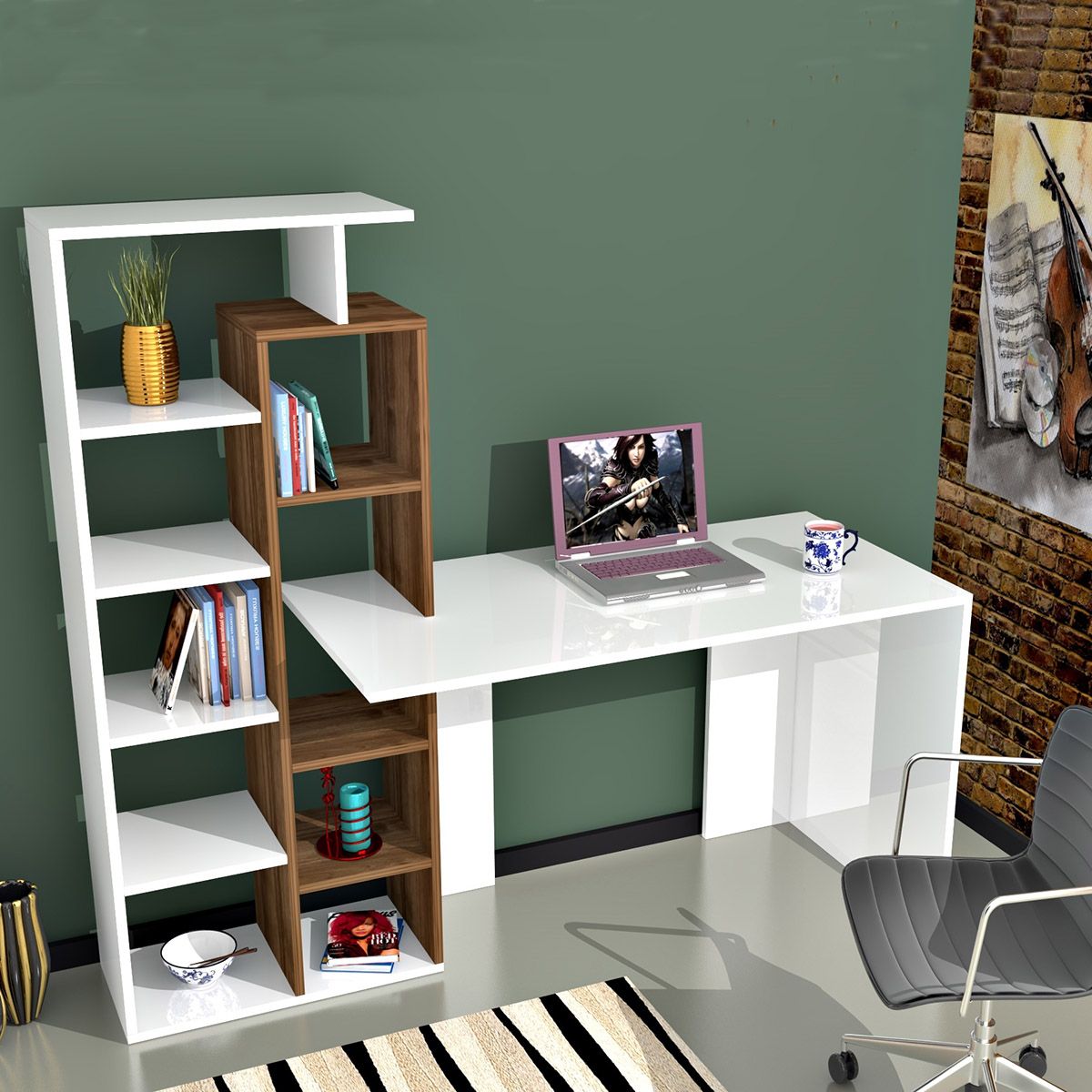 Γραφείο ArteLibre PRIMO Λευκό/Καρυδιά 162x60x148cm