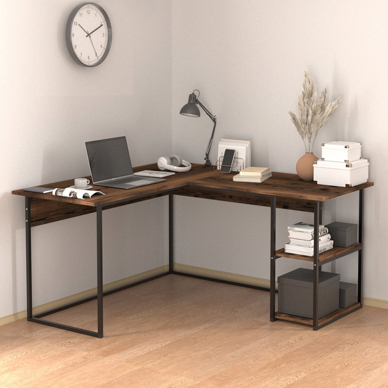 Γραφείο Εργασίας Delta Megapap Χρώμα Καπνιστή Καρυδιά 147,8x140x73,8εκ.