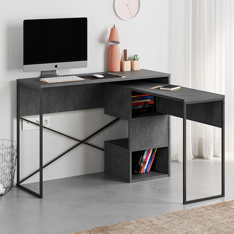 Γραφείο Εργασίας Πολυμορφικό Badau Megapap Χρώμα Γκρι Ρετρό 110x37,2x77εκ.