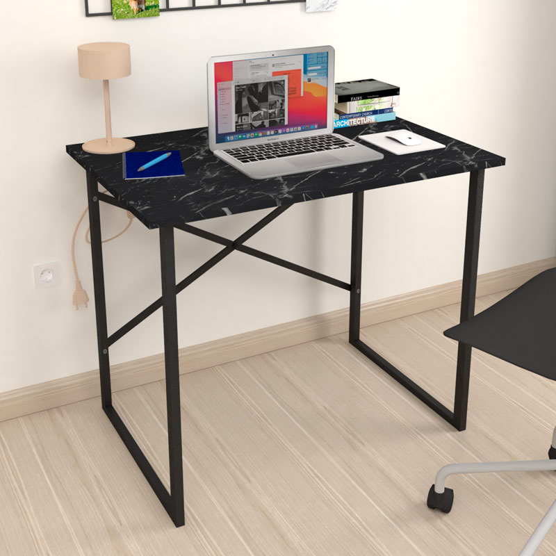 Γραφείο Εργασίας Rilke Megapap Μεταλλικό - Μελαμίνης Χρώμα Μαύρο εφέ Μαρμάρου 90x60x75εκ.