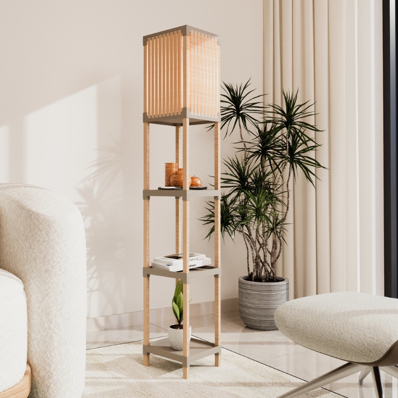 Φωτιστικό Δαπέδου Ξύλινο - Πλαστικό Χρώμα Φυσικό - Μπεζ 24x22x137εκ.