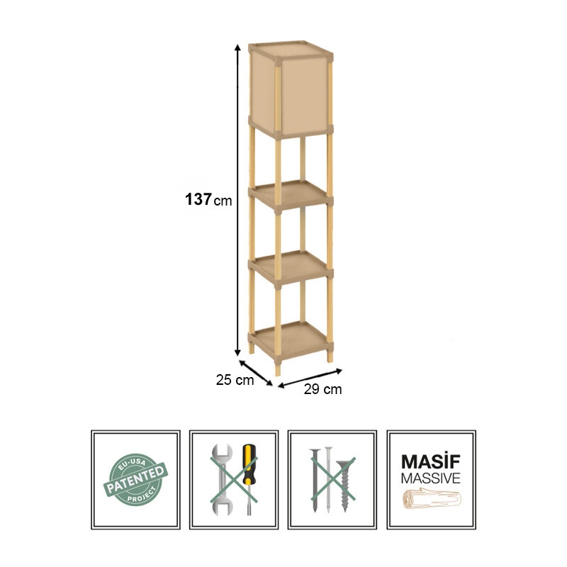 Φωτιστικό Δαπέδου Ξύλινο - Πλαστικό Χρώμα Μπεζ 29x25x137εκ.
