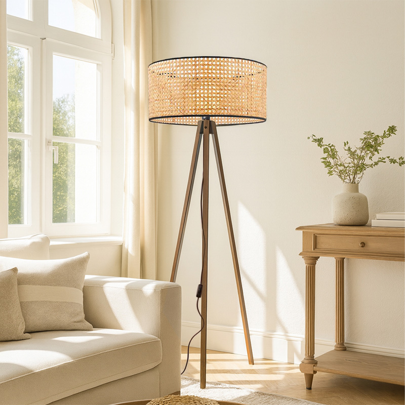 Φωτιστικό Δαπέδου Rivo Megapap e27 Ξύλινο - Ρατάν Χρώμα Φυσικό Ø38x140εκ.