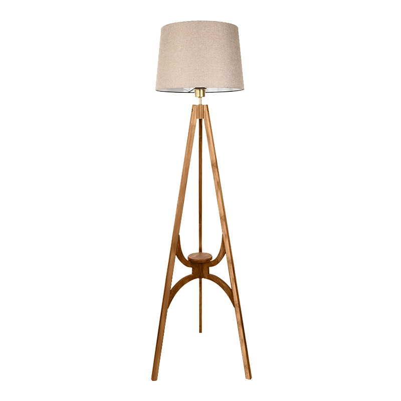 Φωτιστικό Δαπέδου Solen Megapap e27 Ξύλινο - Ύφασμα pvc Χρώμα Καρυδί - Μπεζ 45x45x155εκ.