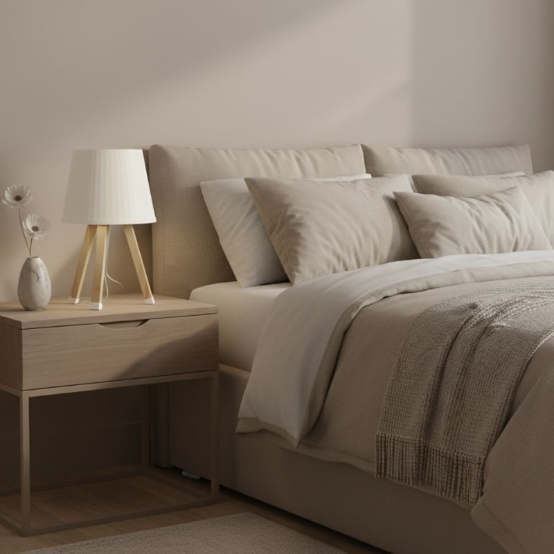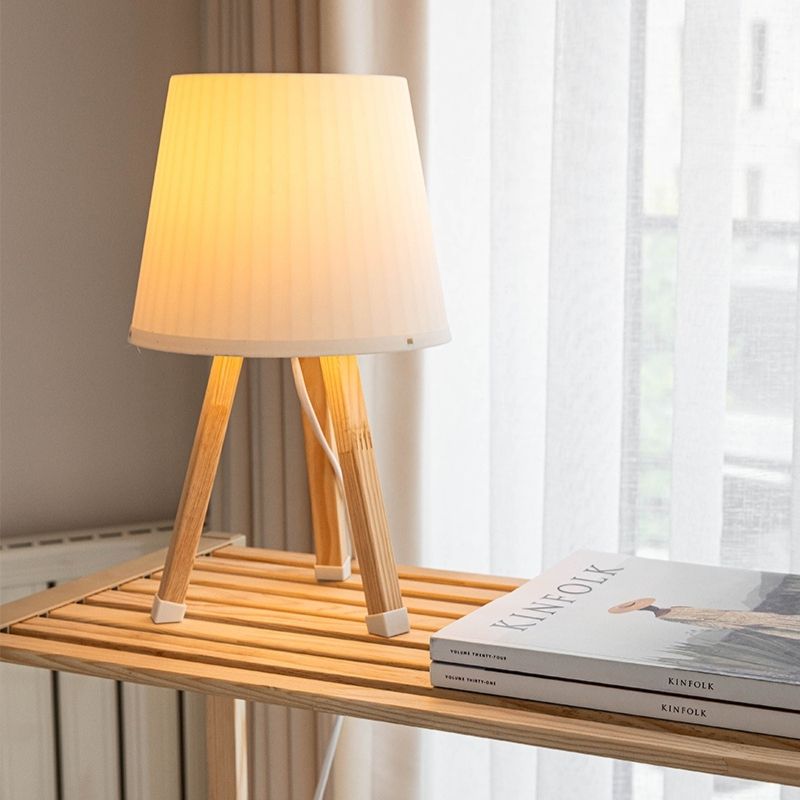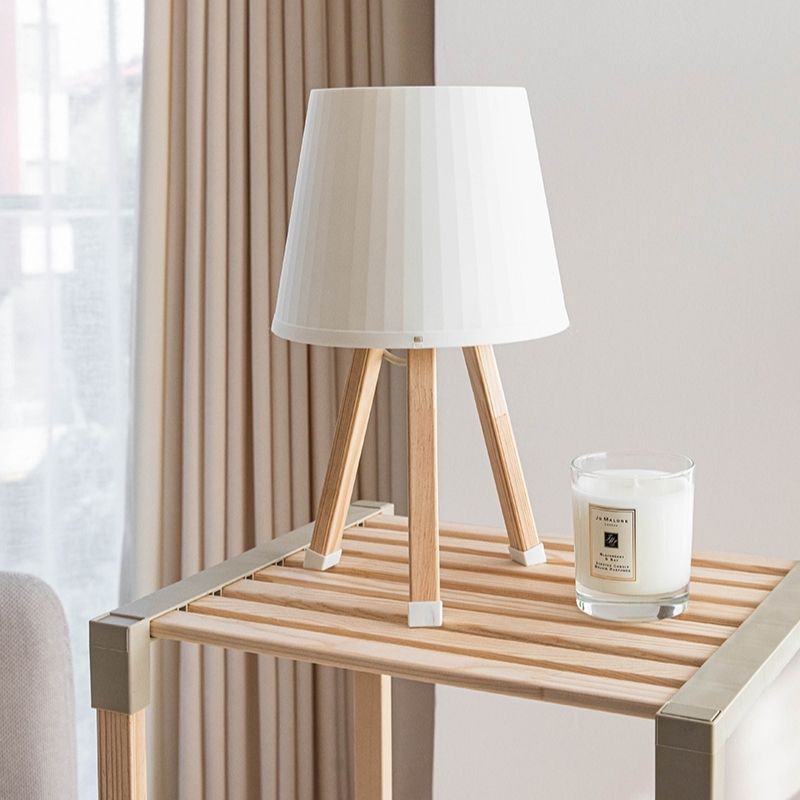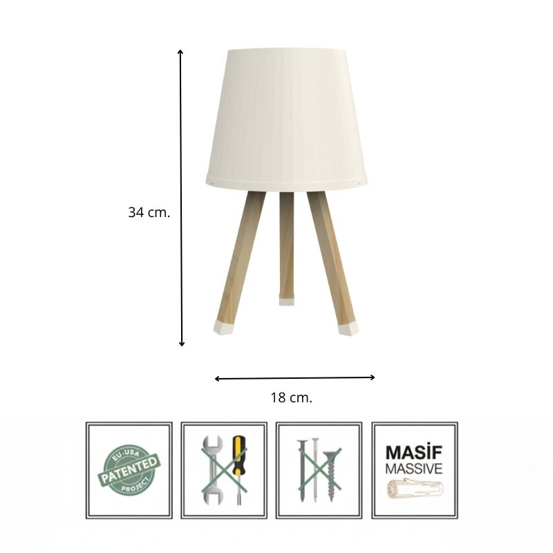 Φωτιστικό Επιτραπέζιο Ξύλινο - Πλαστικό Χρώμα Μπεζ Ø18x34εκ.