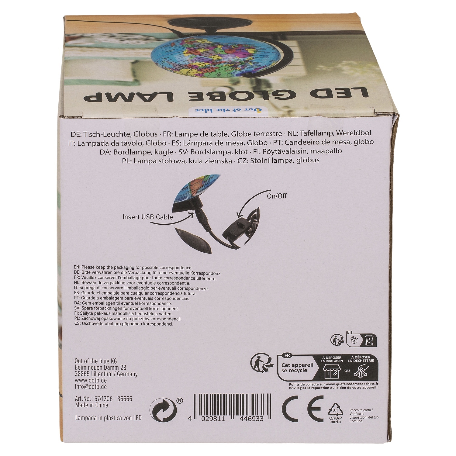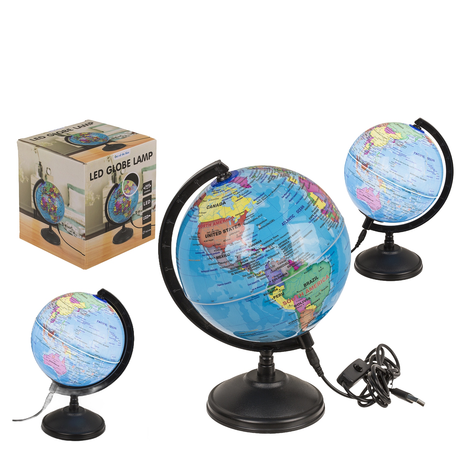 Φωτιστικό επιτραπέζιο LED υδρόγειος με καλώδιο USB