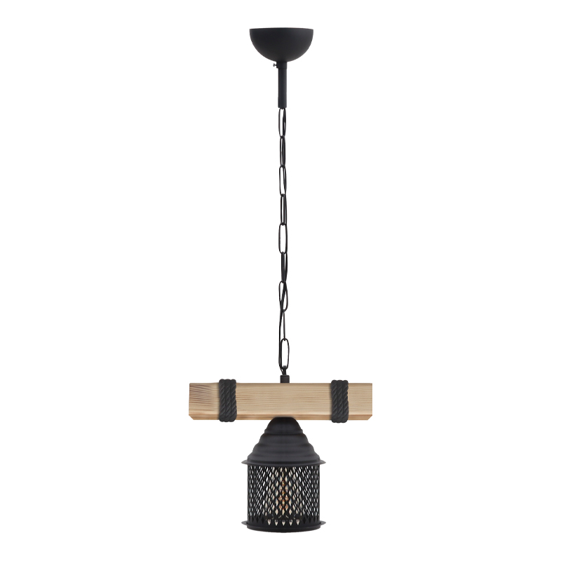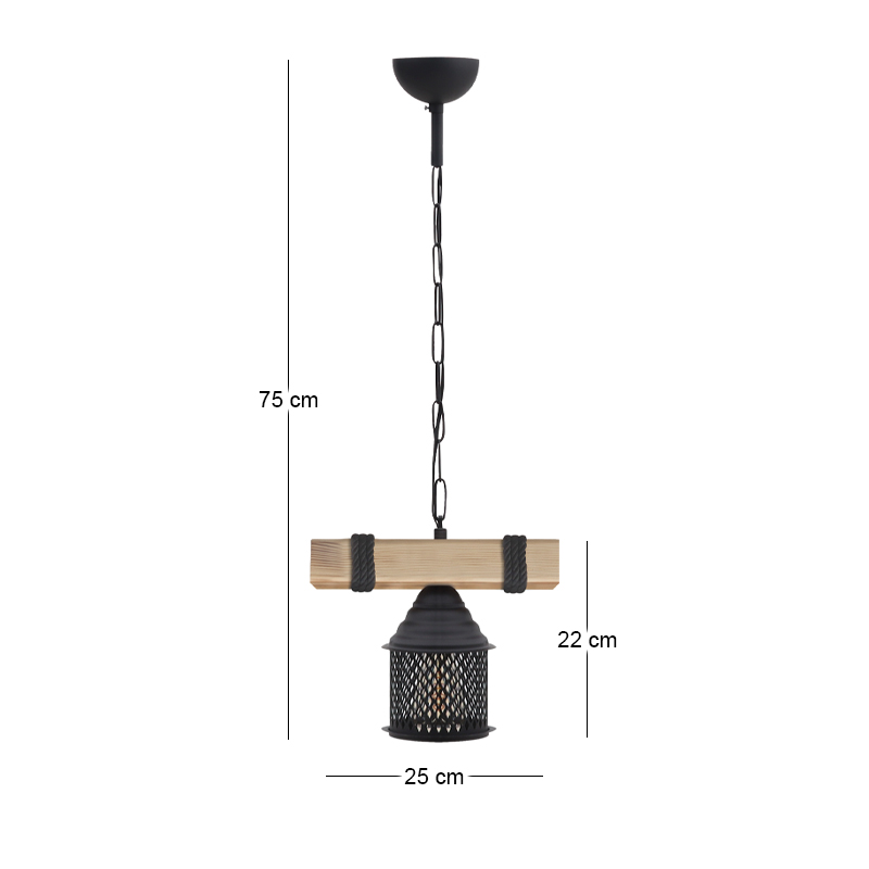 Φωτιστικό Οροφής Elora Megapap e27 Ξύλινο - Μεταλλικό Μονόφωτο Χρώμα Φυσικό - Μαύρο 25x13x75εκ.