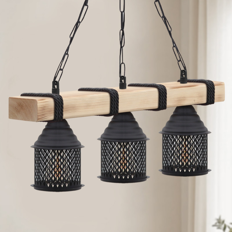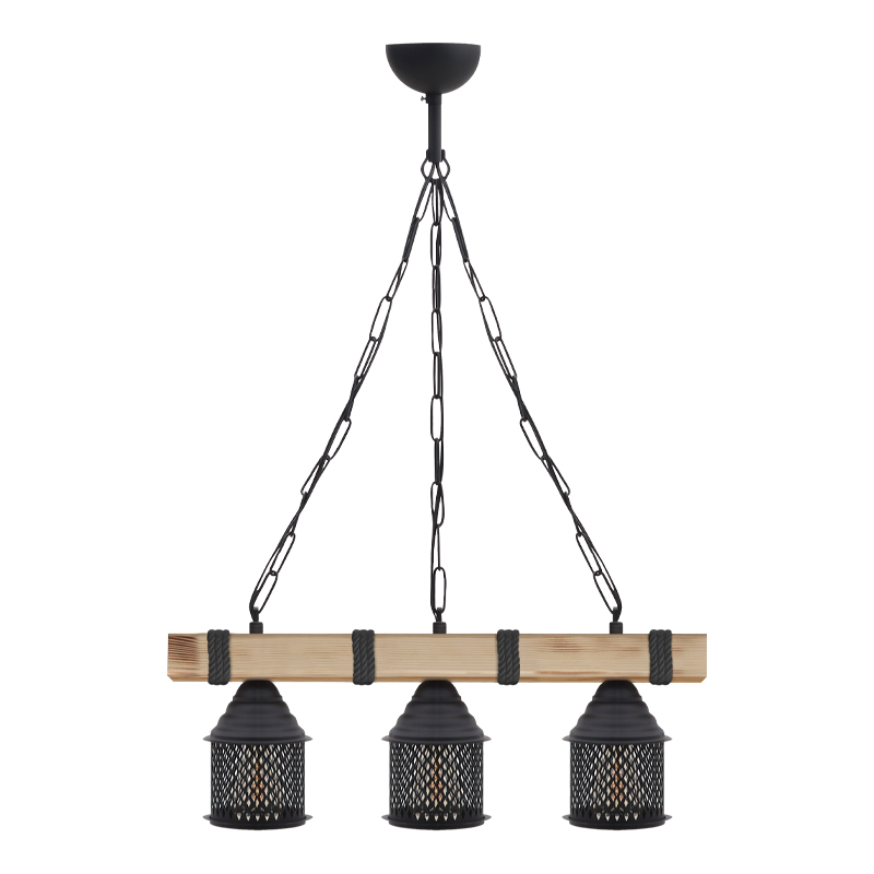Φωτιστικό Οροφής Elora Megapap e27 Ξύλινο - Μεταλλικό Τρίφωτο Χρώμα Φυσικό - Μαύρο 50x13x75εκ.