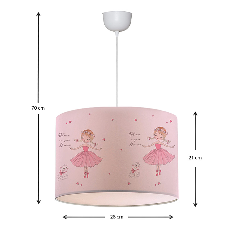 Φωτιστικό Οροφής Goofy Megapap Υφασμάτινο Μονόφωτο με Χαριτωμένες Μπαλαρίνες 28x21x70εκ.