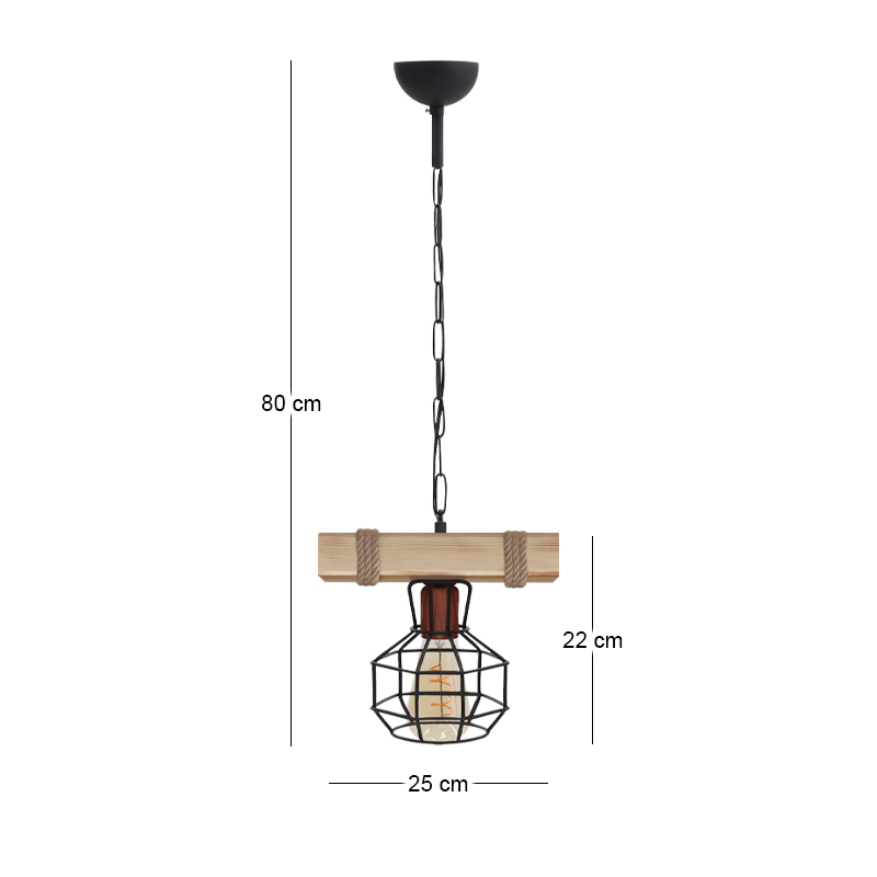 Φωτιστικό Οροφής Lumenia Megapap e27 Ξύλινο - Μεταλλικό Μονόφωτο Χρώμα Φυσικό - Μαύρο 25x14x80εκ.