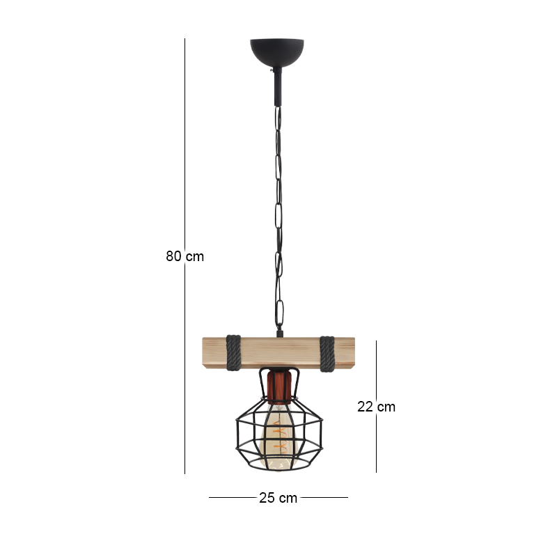Φωτιστικό Οροφής Lumenia Megapap e27 Ξύλινο - Μεταλλικό Μονόφωτο Χρώμα Φυσικό - Μαύρο 25x14x80εκ.