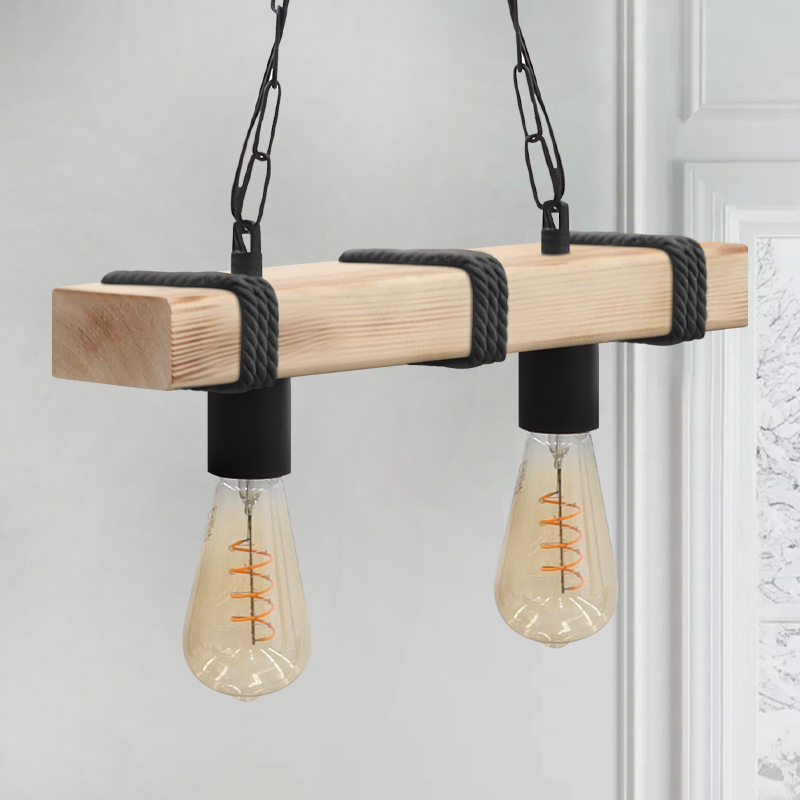 Φωτιστικό Οροφής Vero Megapap e27 Ξύλινο Δίφωτο Χρώμα Φυσικό - Μαύρο 40x8x65εκ.