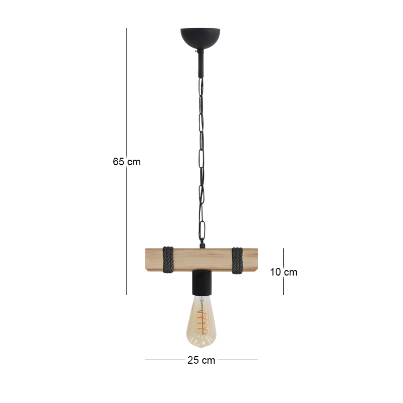 Φωτιστικό Οροφής Vero Megapap e27 Ξύλινο Μονόφωτο Χρώμα Φυσικό - Μαύρο 25x8x65εκ.