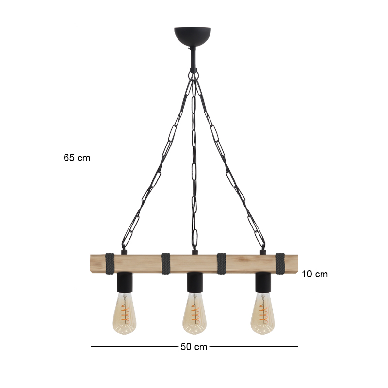 Φωτιστικό Οροφής Vero Megapap e27 Ξύλινο Τρίφωτο Χρώμα Φυσικό - Μαύρο 50x8x65εκ.