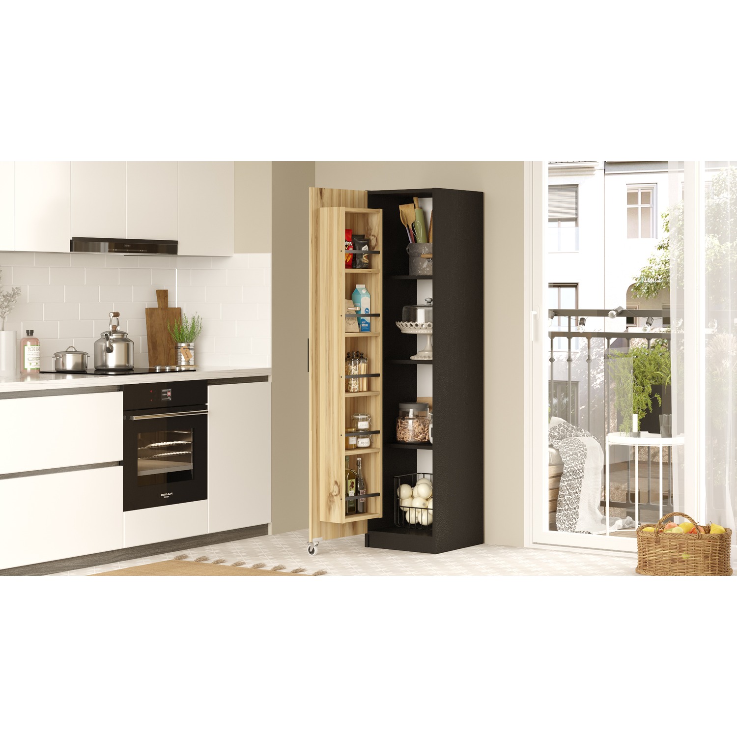 Ντουλάπι Τροφίμων ArteLibre COLNEY Φυσικό/Μαύρο Μοριοσανίδα 41.7x44.3x176.4cm