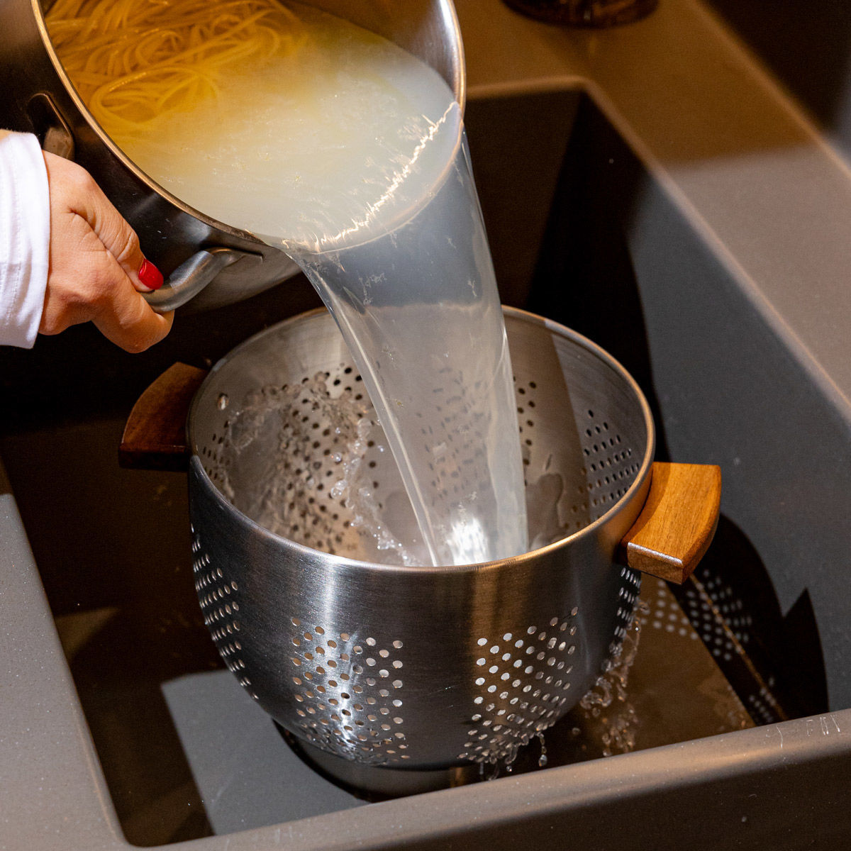Estia Σουρωτηρι Allure Ζυμαρικων Ανοξειδωτο 22cm με Ξυλινες Λαβες