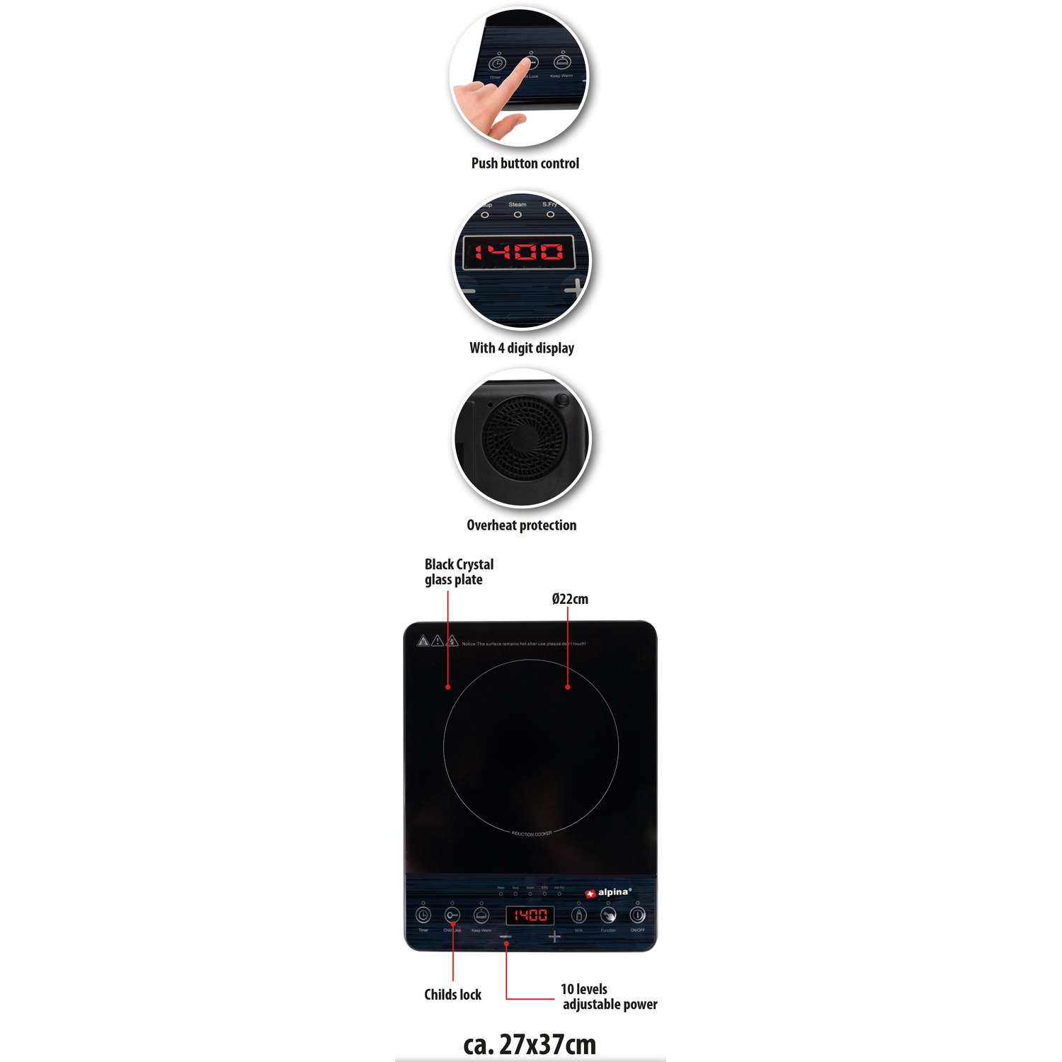 Επαγωγική Εστία Μονή 2000W ALPINA