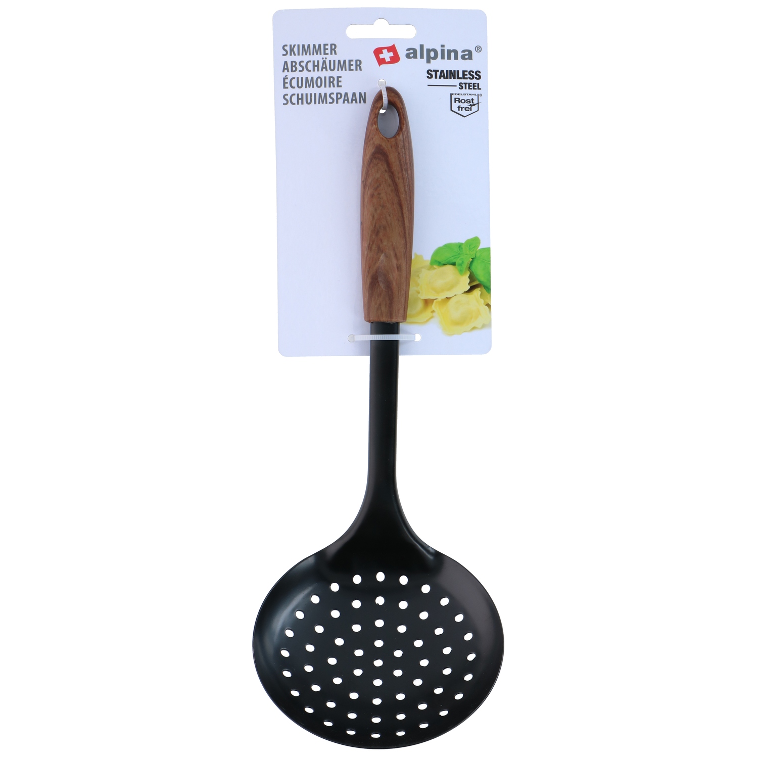 Κουτάλα Τρυπητή Μαύρο Ανοξείδωτο Ατσάλι/Ξύλο 30cm ALPINA