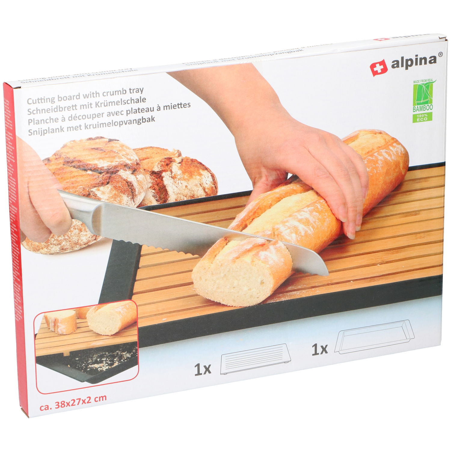 Ξύλο Κοπής με Δίσκο Ψίχουλων 38x27x2cm ALPINA