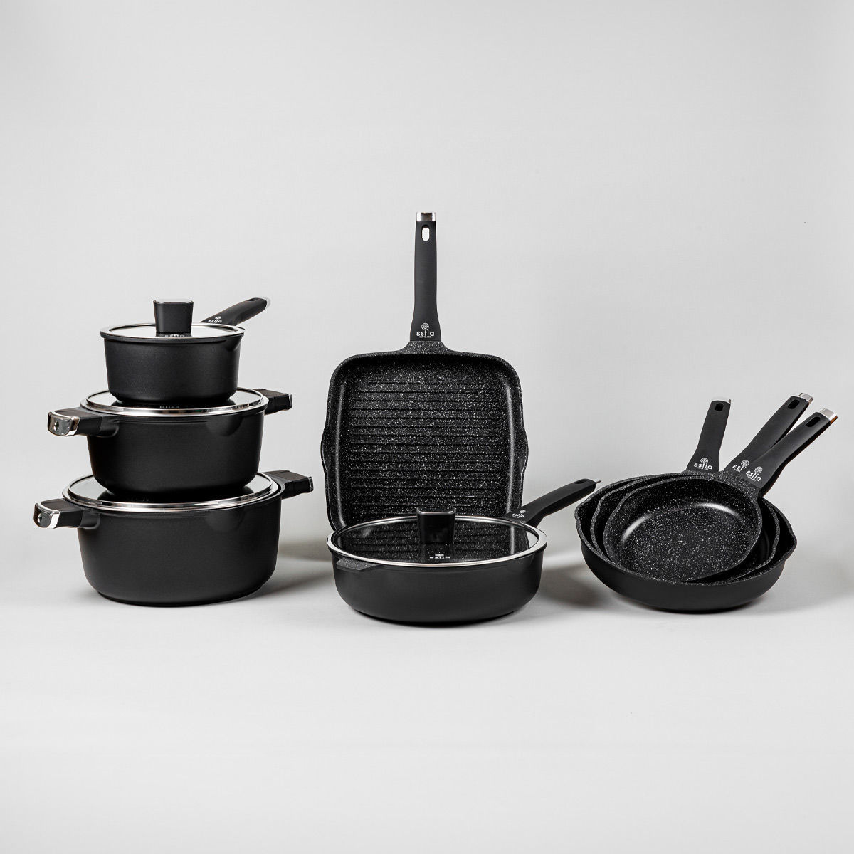 Είναι κατασκευασμένα από χυτό αλουμίνιο υψηλής ποιότητας και αντοχής με αντικολλητικές ιδιότητες, ενώ διαθέτουν πιστοποίηση Cookmark. Η total black εξωτερική επίστρωση και το μοναδικό design θα ανανεώσουν την κουζίνας σας. Με αντιολισθητικές λαβές βακελίτη που παραμένουν κρύες όσο μαγειρεύετε. Η σειρά μαγειρικών σκευών Nordic Series προσφέρει ομοιόμορφη κατανομή θερμοκρασίας και διατήρηση θερμότητας κατά μήκος του σκεύους. Έτσι μπορείτε να μαγειρεύετε διατηρώντας αναλλοίωτες τις θρεπτικές ουσίες του γεύματος σας και εξοικονομώντας ενέργεια.