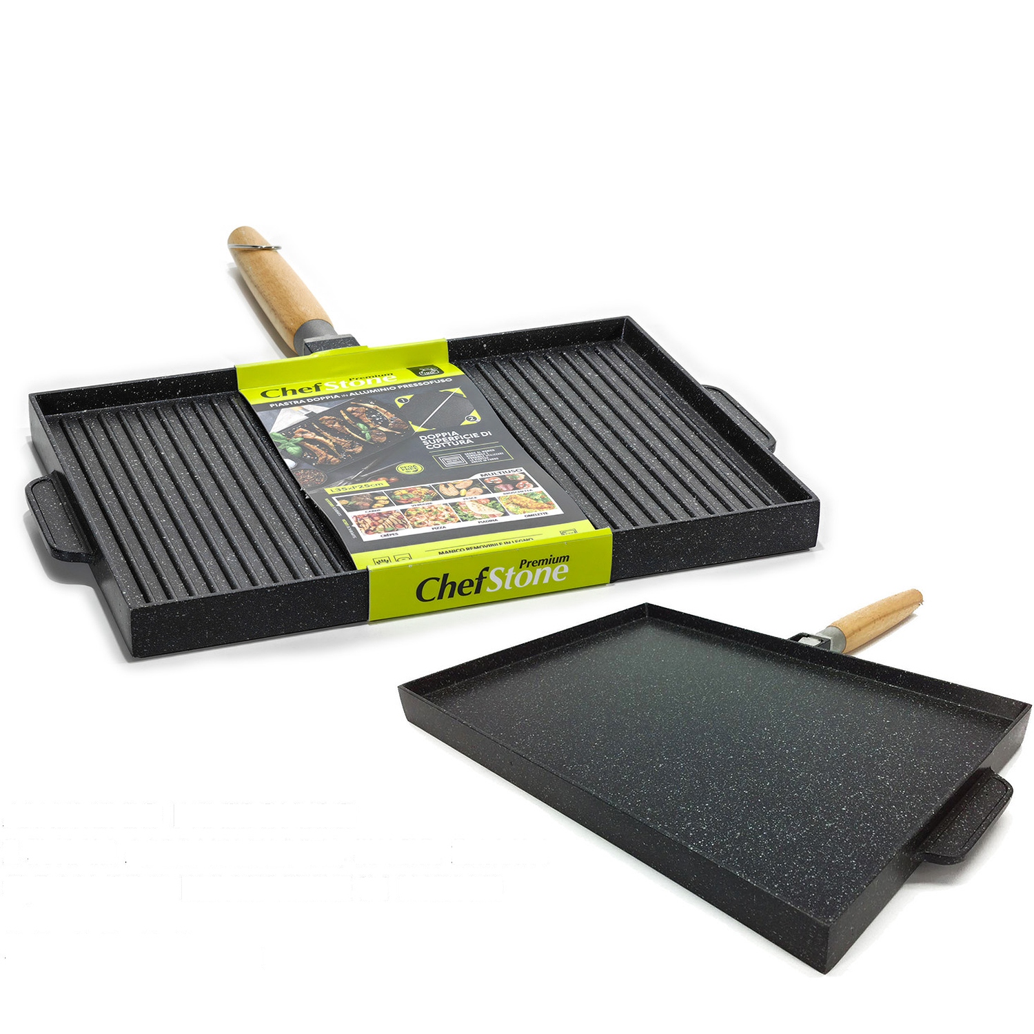 Γκριλιέρα Chef Stone Αντικολλητική/Αλουμίνιο/Ξύλινη λαβή 35x25x2.8cm