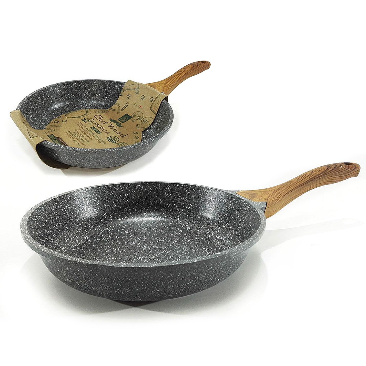 Τηγάνι αντικολλητικό αλουμινίου με επίστρωση stone με ξύλινη λαβή