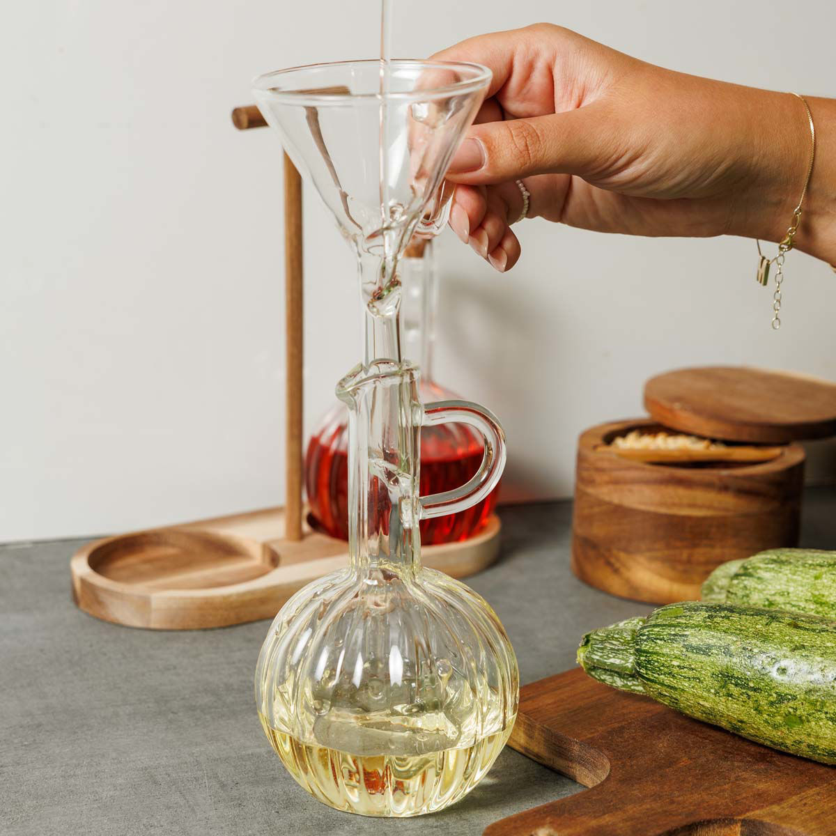 Estia Δοχεια για Λαδι/ξυδι Allure Γυαλινα σετ 2 tem σε Ξυλινη Βαση