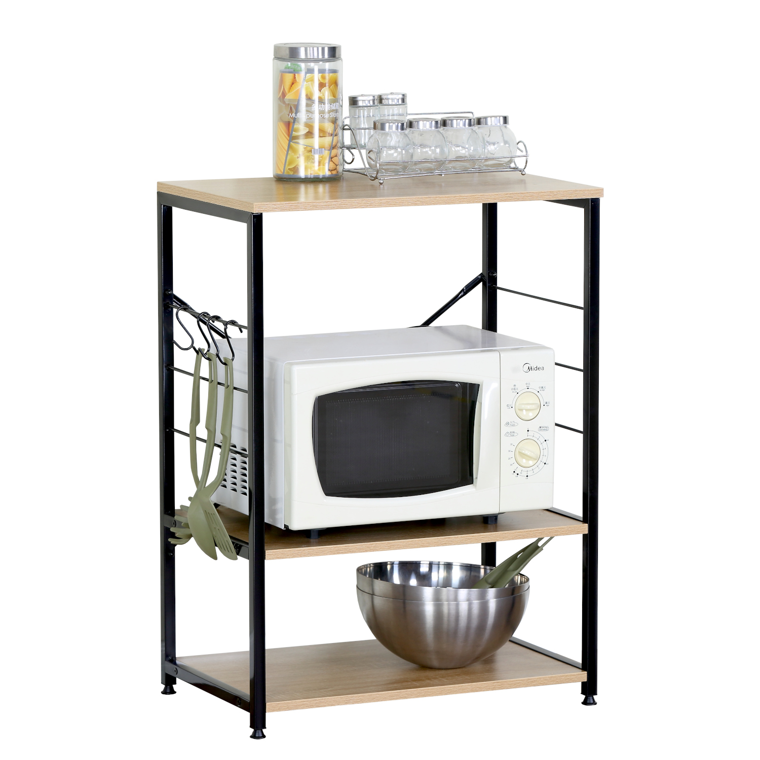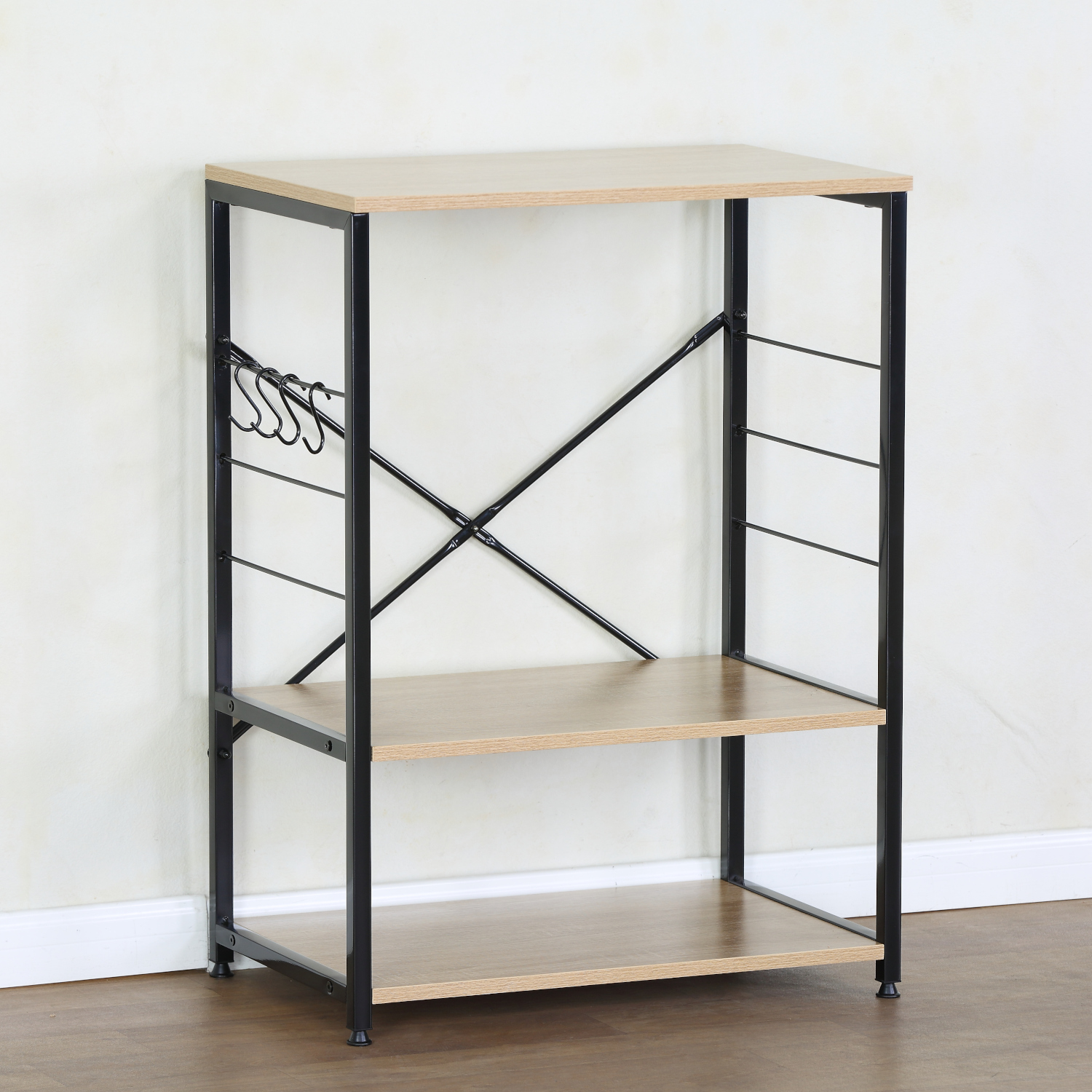 Ραφιέρα Κουζίνας ArteLibre FAIRWYN Δρυς/Μαύρο Μοριοσανίδα/Μέταλλο 60x40x82cm