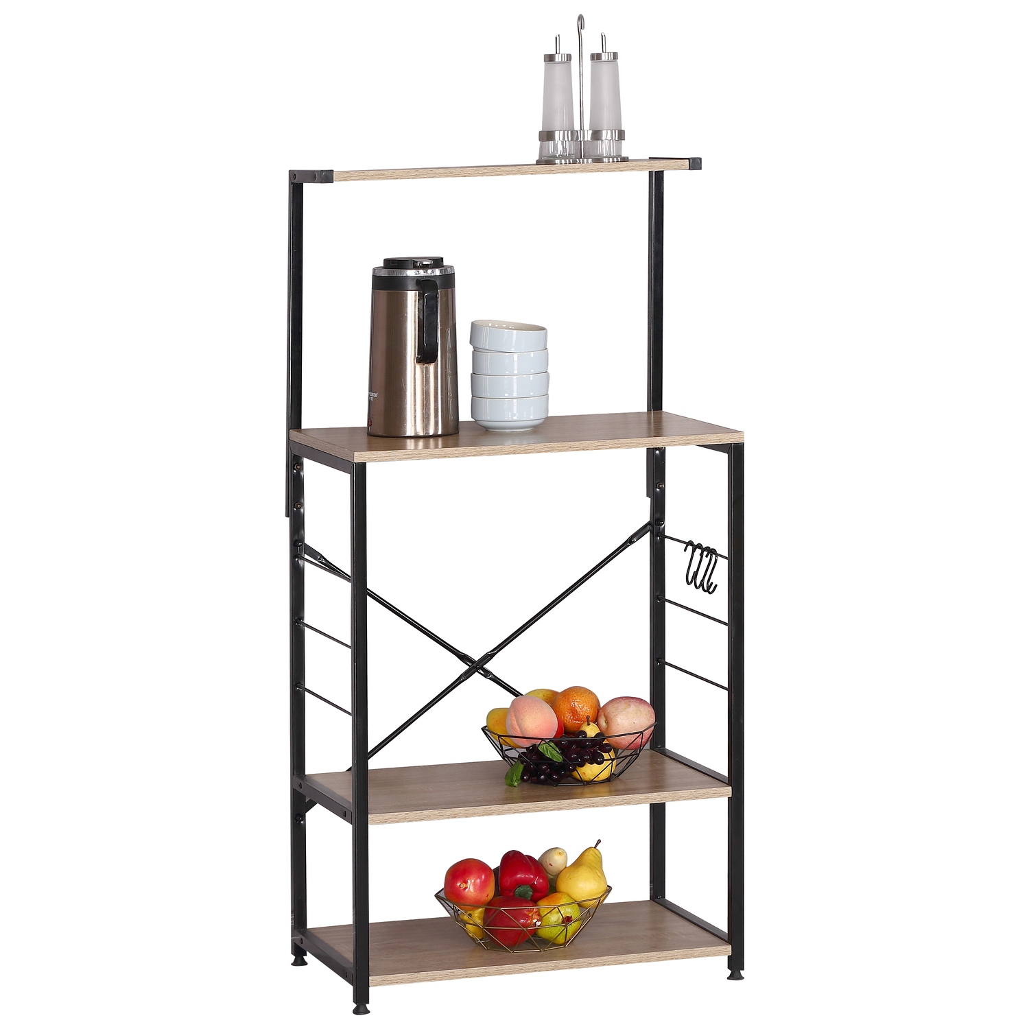 Ραφιέρα Κουζίνας ArteLibre GRANTHAM Δρυς/Μαύρο Μοριοσανίδα/Μέταλλο 60x40x123cm