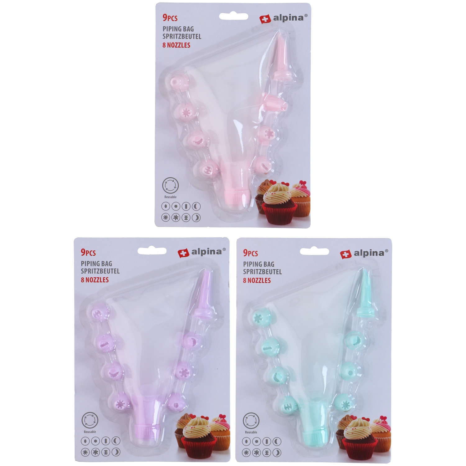 Σετ Σακούλα Ζαχαροπλαστικής 9Τμχ 3 Χρώματα ALPINA