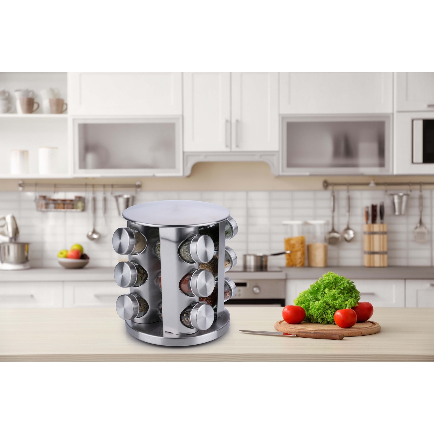 Βάση Μπαχαρικών Περιστρεφόμενη Ασημί Μεταλλική/Γυάλινη 19x23cm ALPINA