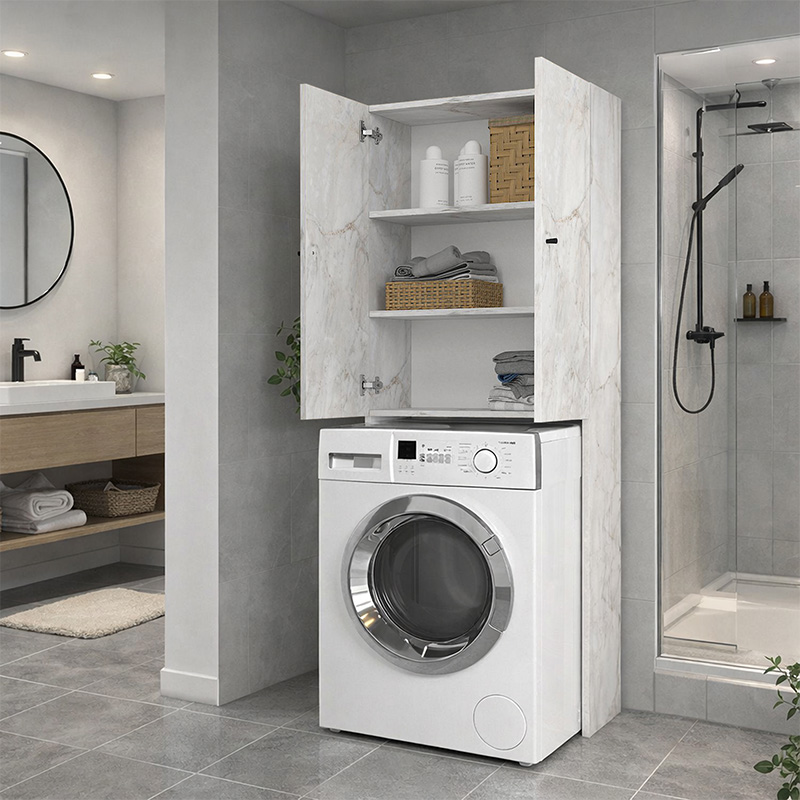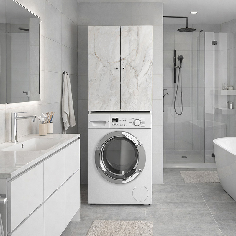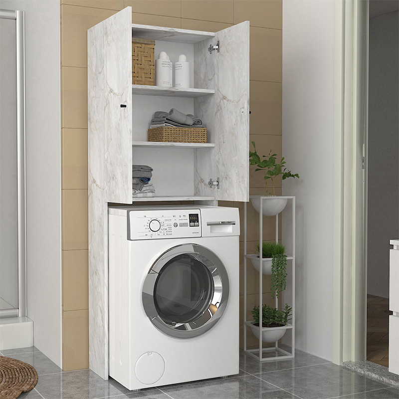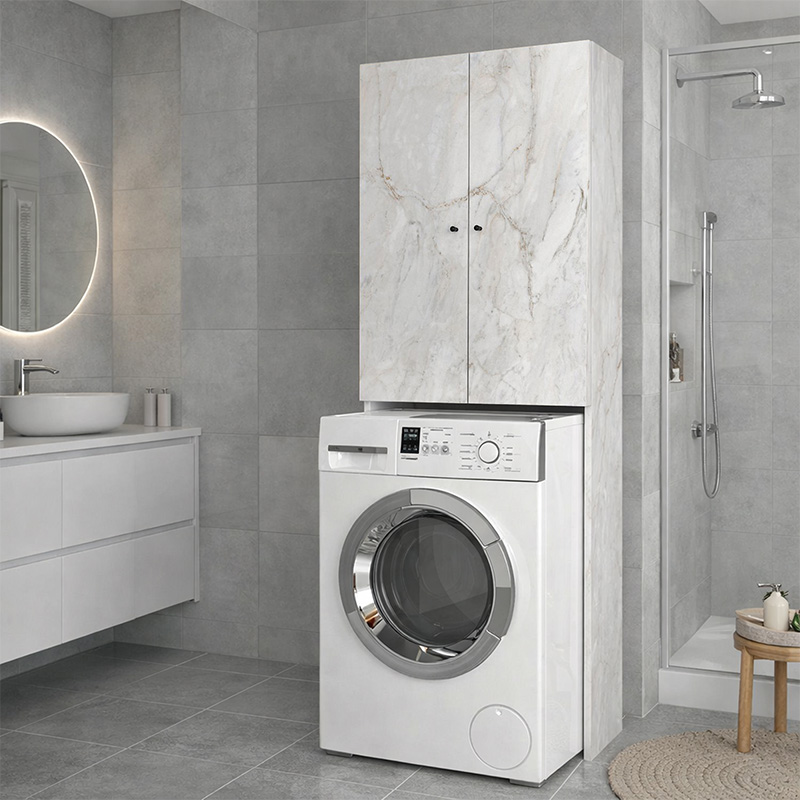 Έπιπλο Πλυντηρίου Romme Megapap Χρώμα Λευκό εφέ Μαρμάρου 65x27,1x180εκ.
