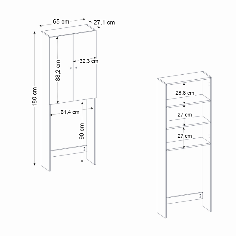 - Διαστάσεις: Μήκος 65 x Βάθος 27,1 x Ύψος 180 εκ.