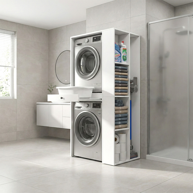 Έπιπλο Πλυντηρίου - Στεγνωτηρίου Bace Megapap Χρώμα Λευκό 90x60x187εκ.