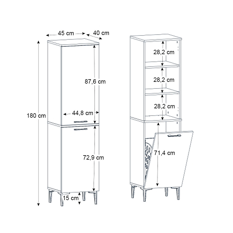 - Διαστάσεις: Μήκος 45 x Βάθος 40 x Ύψος 180 εκ.