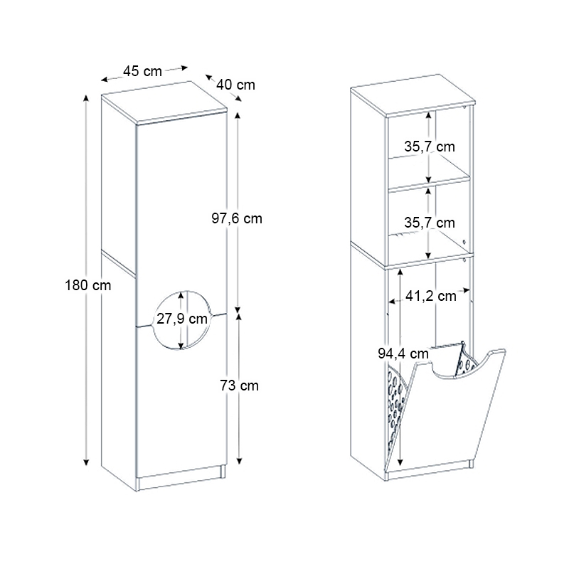 - Διαστάσεις: Μήκος 45 x Βάθος 40 x Ύψος 180 εκ.