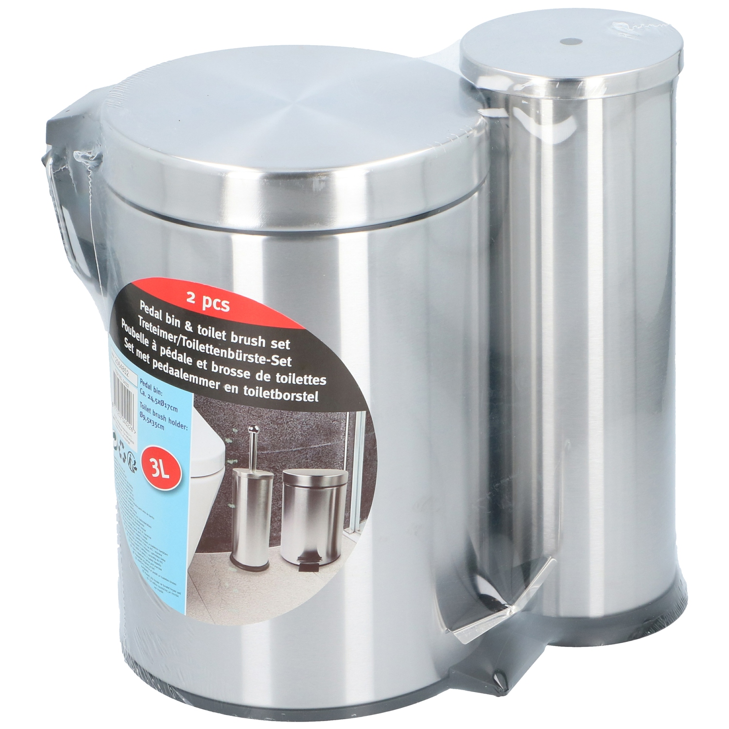 Κάδος Πεντάλ 3L και Βούρτσα Τουαλέτας Ανοξείδωτο Ατσάλι 2Τμχ
