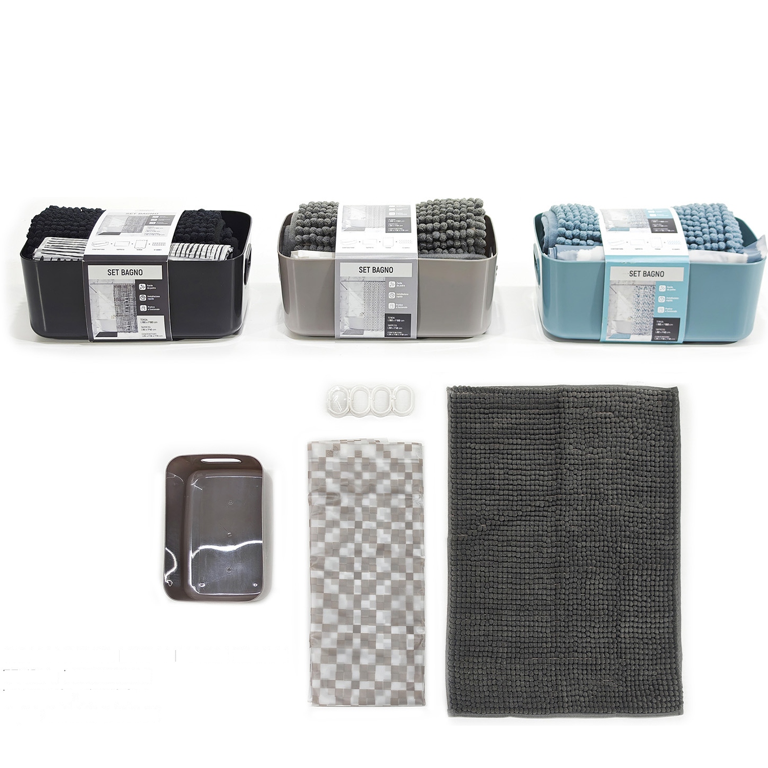 Σετ Μπάνιου Σε 3 Χρώματα Περιέχει Κουρτίνα 180x180cm Χαλάκι 60x40cm