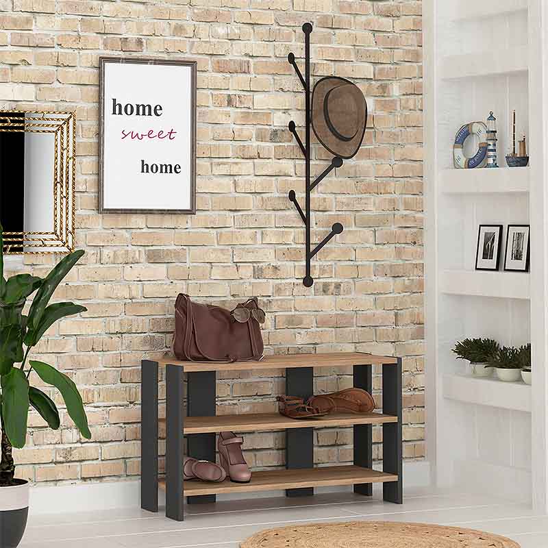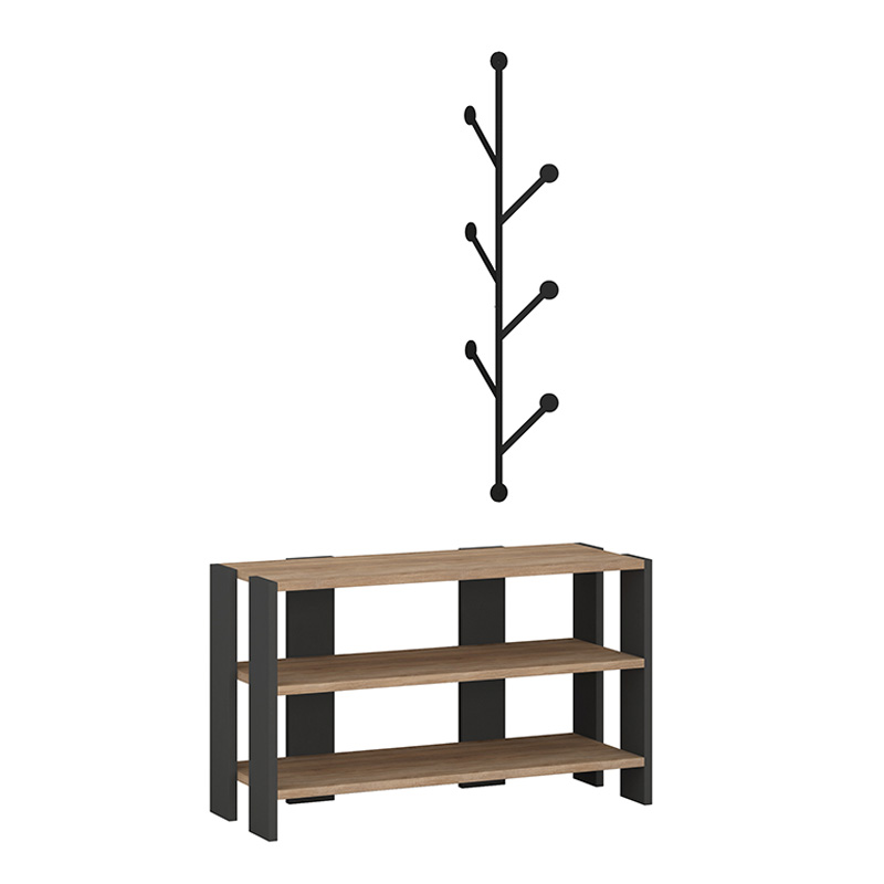 Παπουτσοθήκη με Κρεμάστρα Manc Megapap από Μελαμίνη Χρώμα Ανθρακί - Φυσικό Οξιάς 80x30x43εκ.