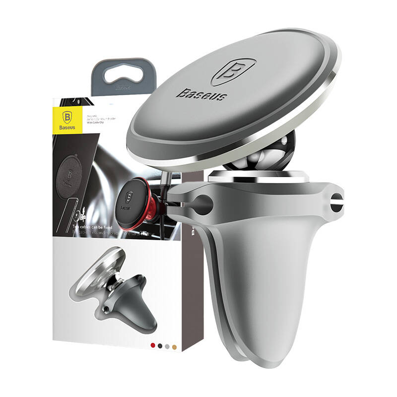Αυτή η βάση προσφέρει άνετη ρύθμιση, χάρη στην περιστροφή 360 μοιρών. Τα κλιπς στη βάση του αξεσουάρ επιτρέπουν την τακτοποιημένη τοποθέτηση των καλωδίων φόρτισης. Επιπλέον, το μέγεθος της βάσης είναι μικρό, επιτρέποντας τον εύκολο χειρισμό με το ένα χέρι. Το προϊόν είναι κατασκευασμένο από κράμα αλουμινίου υψηλής ποιότητας, γεγονός που εγγυάται την ανθεκτικότητα στις φθορές. Τέλος, η βάση προορίζεται για τοποθέτηση στους αεραγωγούς του αυτοκινήτου.