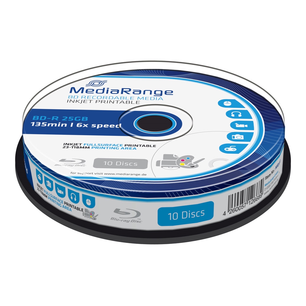 Mediarange bd-r blu-ray 25gb 6x Cake box x10 Inkjet Fullsurface Printable (Mr500)