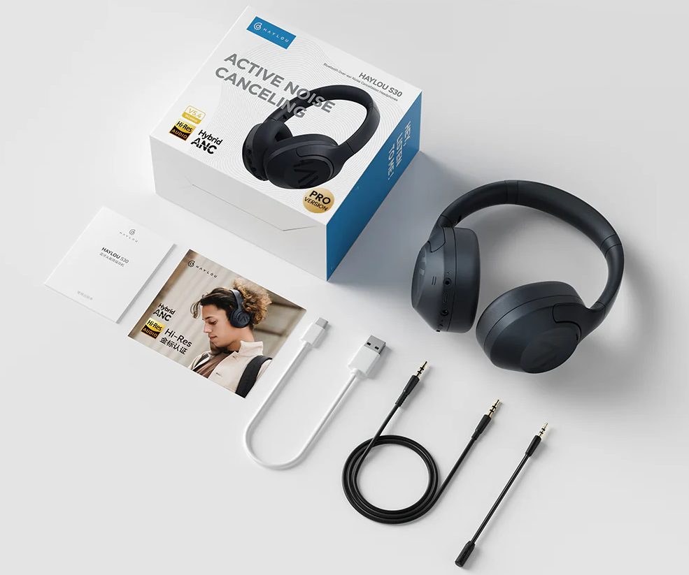 Haylou S30 Pro Black - BT ANC Headset, Detachable Mic, Hi-Res Audio -42Db 2 mode ANC - Protein Leath