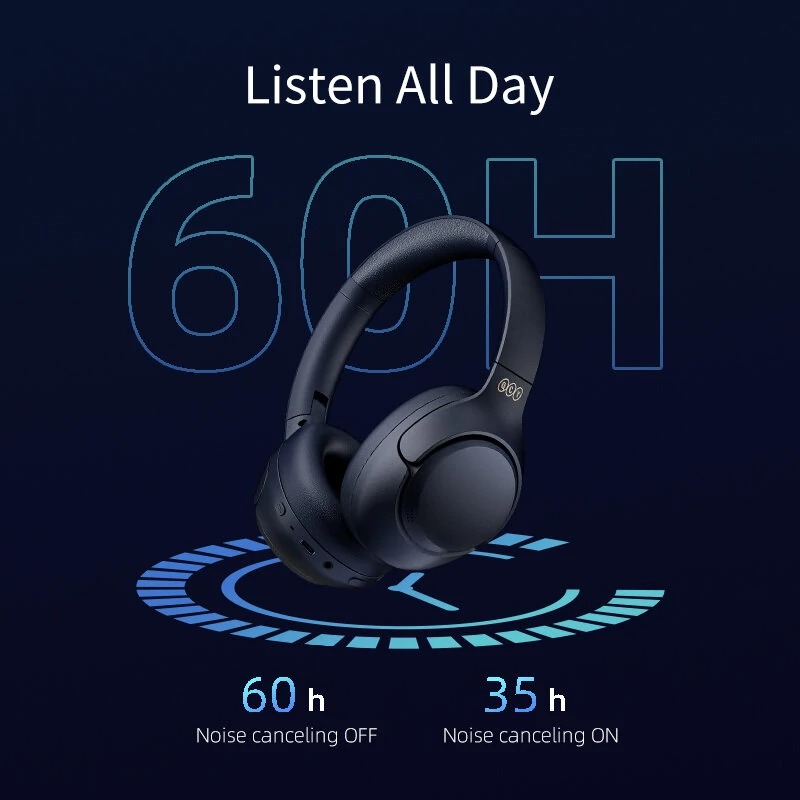 QCY H3 High-Res Headset Blue - w. Mic, Active Noise Canceling with 4 mode ANC 60h Multipoint