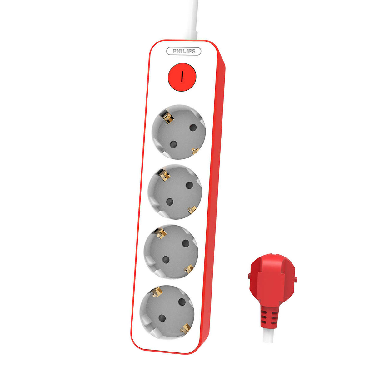 Philips Chp2145r.grs Πολύπριζο 4 Θέσεων με Προστασία και Καλώδιο 1.5m Kόκκινο