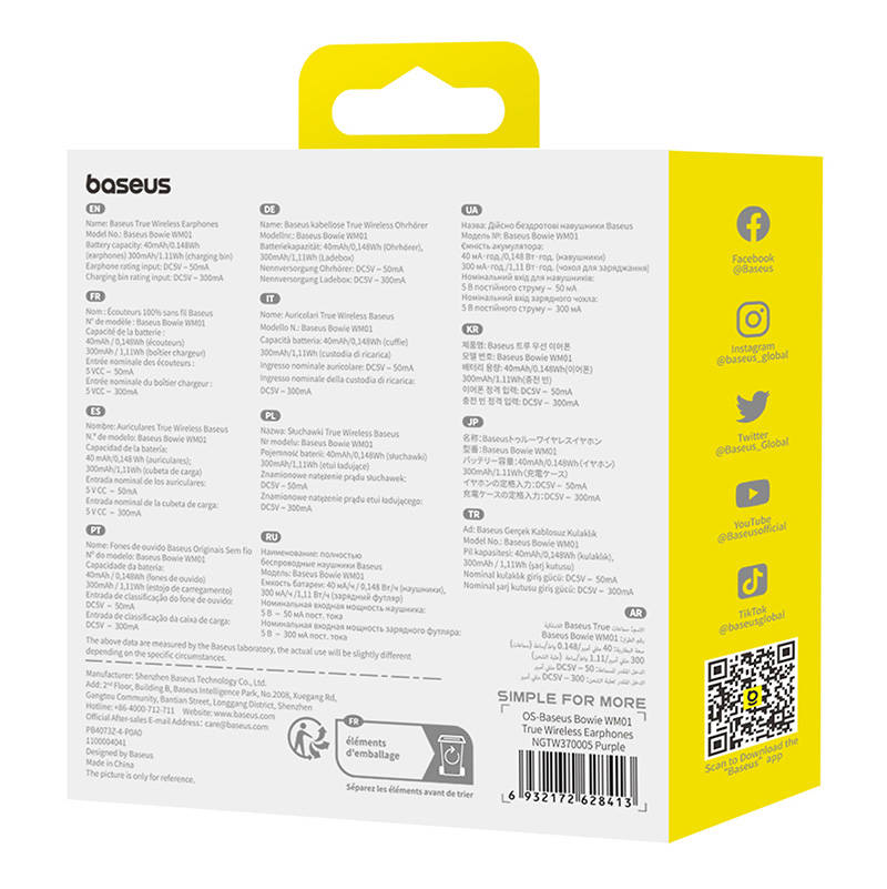 Τα Baseus Bowie WM01 είναι εξαιρετικά μικρά και ελαφριά ασύρματα ακουστικά. Η θήκη φόρτισης έχει επίσης μικρό μέγεθος, ώστε να μπορείτε εύκολα να τα αποθηκεύσετε στο σακίδιο ή την τσάντα σας. Συνδέονται σε μια συμβατή συσκευή μέσω Bluetooth 5.3 και υποστηρίζουν φωνητικούς βοηθούς (Siri, Amazon Alexa) για ακόμα μεγαλύτερη ευκολία.